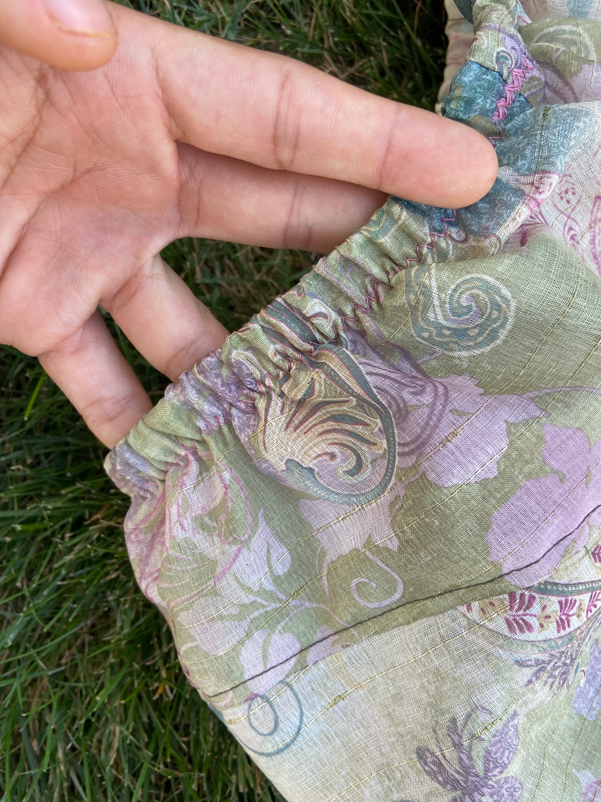 Made using a dead-stock fabric with a whimsical dreamy print.